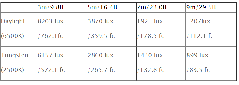 With Color Temperature adjustable from 2600K-6600K, the light Lumen output can remain stable while adjusting the color temperature, operated by DMX512 and on board. It allows for a large light output over a wide dispersal area and perfect application for Studio, film and photograph lighting.