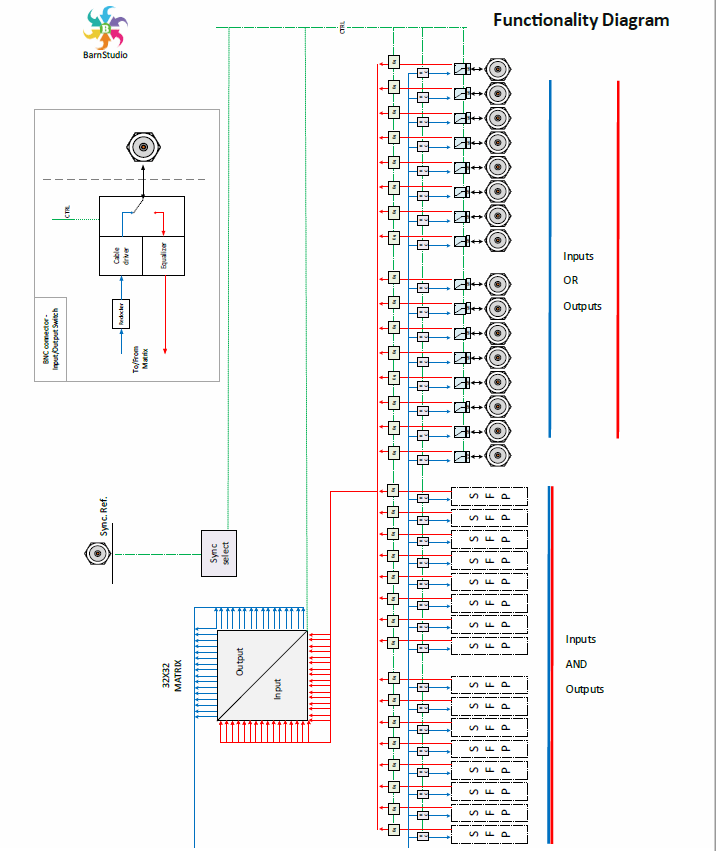 The BarnOne 10AA has 16x SFP, 8x BNC, 2x D-SUB25 w/Analog Audio, MADI router. The BarnOne series of routers can provide a 32 x 32 built-in routing system with a combination of BNC and SFP I/O ports to satisfy any application.