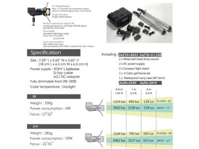 | LIGHT FEATURES: Color, Cases | DAYLIGHT/available in Tungsten, Tungsten/available in Daylight |