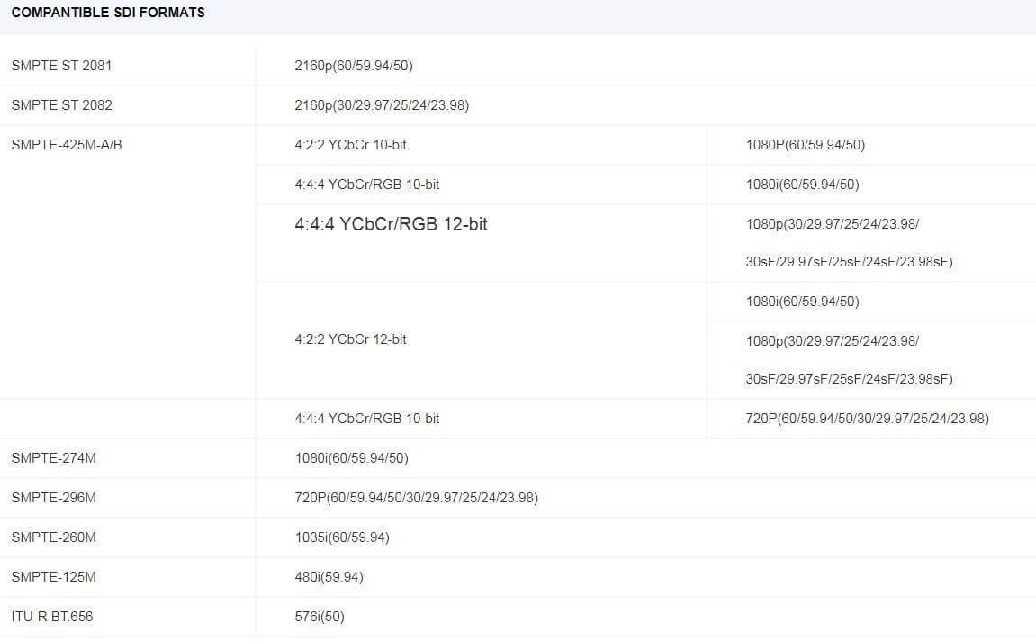 (Auto-detected and compatiable to 6G/3G/HD/SD-SDI) |