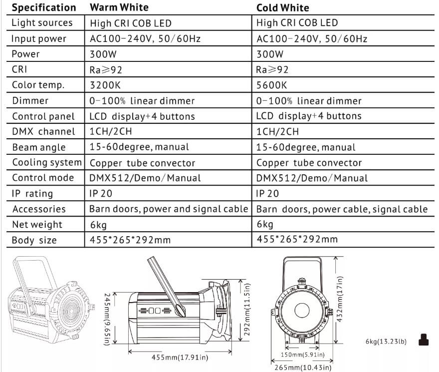 This television projector light equips high power 200W LED lamps as the light source, it’s energy saving. And it uses high-efficiency optical lens, lightsoft. It’s the best choice for film and television performances, studio and other places.